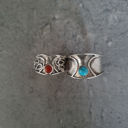 ringen "ridder"en "jonkvrouw", zilver, turkoois en jaspis